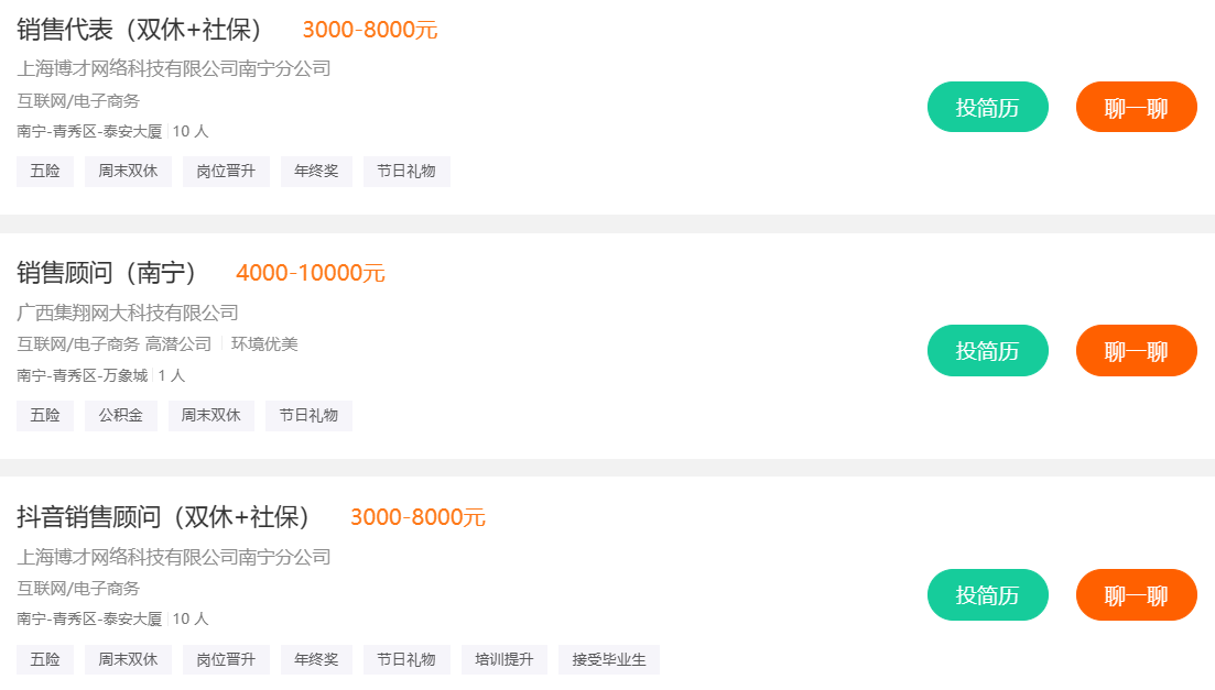 接下来小编也为大家整理了南宁互联网相关的高薪工作,感兴趣的可以点击查看。